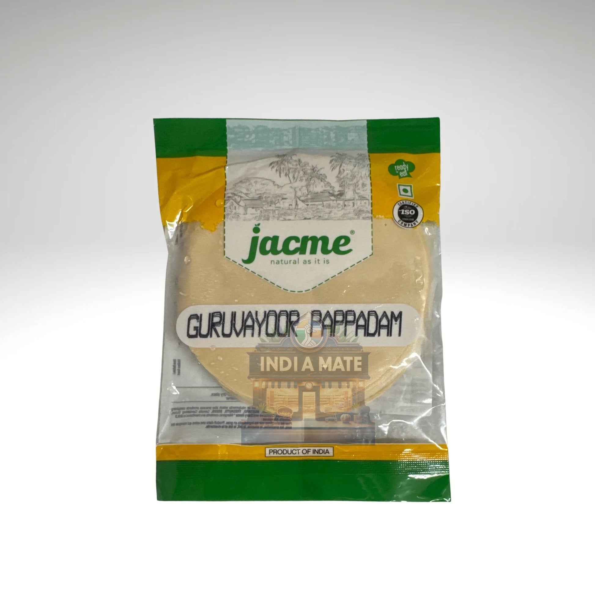 Jacme Guruvayoor Pappadam (Frozen) brings the authentic taste of Kerala to your table. Made from high-quality urad dal, these thin, crisp pappadams are pre-frozen to retain freshness and flavour. Quick and easy to prepare, they are perfect for frying or roasting, making every meal special with a traditional South Indian touch.
