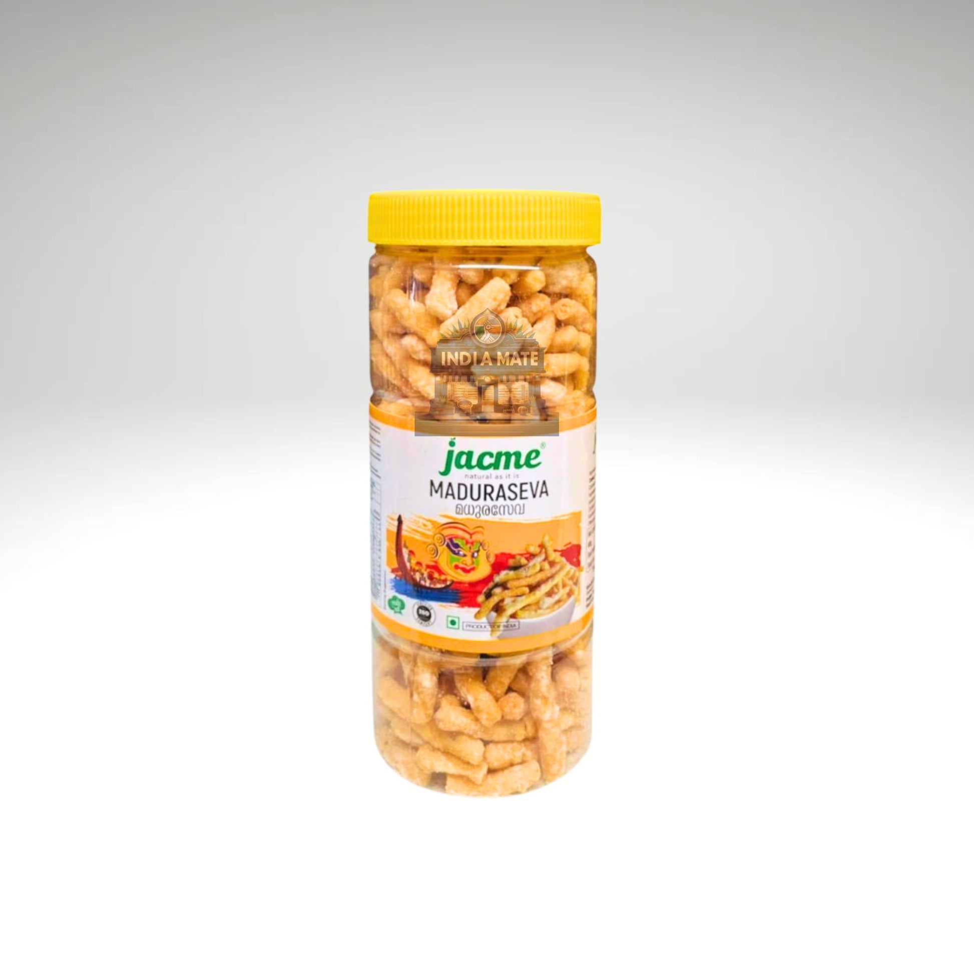 Jacme Maduraseva is a traditional Kerala sweet snack made from roasted gram flour, sugar, and aromatic spices, shaped into fine, crispy strands. Light, crunchy, and mildly sweet, it’s a perfect tea-time treat and a nostalgic reminder of homemade Kerala snacks. Enjoy it as a quick bite, festive snack, or a delightful addition to your sweet box.
